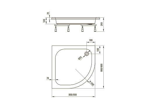 поддоны Материал: акрил Форма: полукруглый Ширина [мм]: 900 Длина [мм]: 900 Высота [мм]: 120 Прочный акриловый материал, сохраняющий блеск и цвет. Металлический стеллаж с регулируемыми ножками в комплекте. Внимание! Душевой поддон совместим с сифоном NHC_025C или полусифоном NHC_620K и клапаном CLICK-CLACK. Специальное средство, безопасное для очищаемых поверхностей.