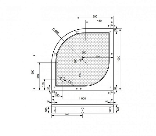 Угловой душевой поддон в форме четверть круга Эстет Омега 100x100 см., выделяется необычным оформлением бортиков в виде лепестка, который делает простой минималистичный дизайн изделия красивым и гармоничным. Модель прекрасно впишется в современный интерьер и на протяжении долгого времени, будет радовать пользователей практичностью и функциональностью. Приятная на ощупь, гладкая и теплая поверхность литьевого мрамора, гарантирует комфорт во время принятия душа и обладает высокими антибактериальными свойствами.