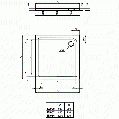 Душевой поддон Ideal Standard E098801 Connect Air 80х80 см, Euro White (евробелый)