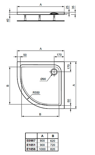 Душевой поддон Ideal Standard E105101 Connect Air сегментный, 90х90 см, Euro White (евробелый)