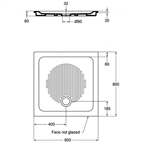 CONNECT Керамический квадратный душевой поддон 80X80 см.