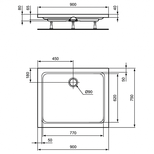 Душевой поддон Ideal Standard K277201 Hotline 90х75 см, Euro White (евробелый)