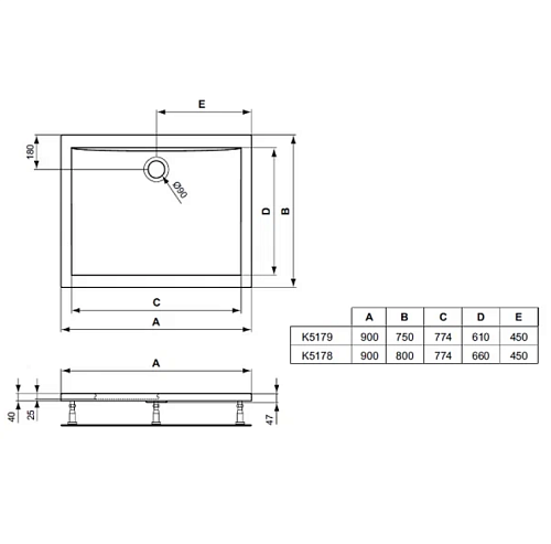 Душевой поддон Ideal Standard K517801 Ultralight 90х80 см, Euro White (евробелый) купить по доступной цене
