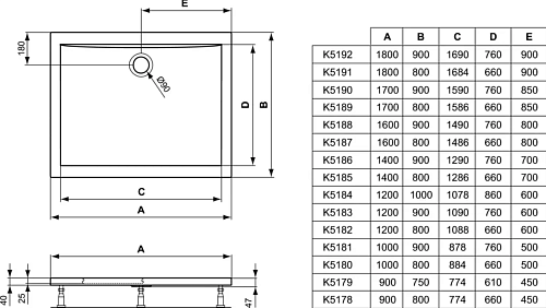 ULTRAFLAT Акриловый прямоугольный душевой поддон. Сифон, ножки и крепеж к стене заказываются дополнительно. Подходит для напольной и утопленной установки.