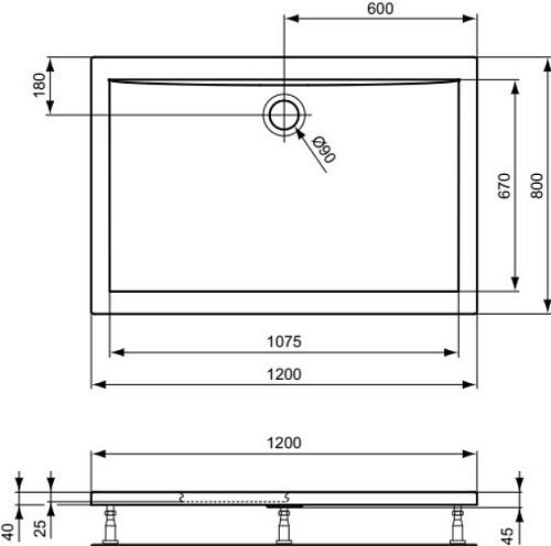 Душевой поддон Ideal Standard K518201 Ultralight 120х80 см, Euro White (евробелый)