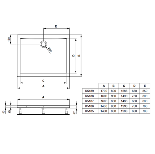 Душевой поддон Ideal Standard K518901 Ultralight 170х80 см, Euro White (евробелый) купить по доступной цене