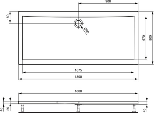 Душевой поддон Ideal Standard K519101 Ultralight 180х80 см, Euro White (евробелый)