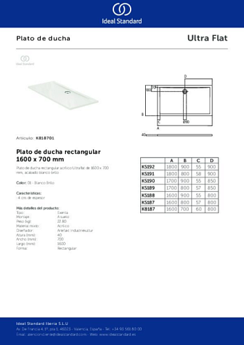 Душевой поддон Ideal Standard K818701 Ultraflat 160х70 см, Euro White (евробелый)