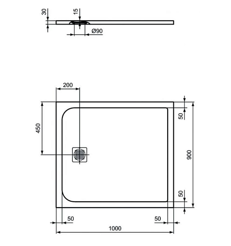 Душевой поддон Ideal Standard K8220FR Ultraflat S 100х90 см, Pure white (белый) купить по доступной цене