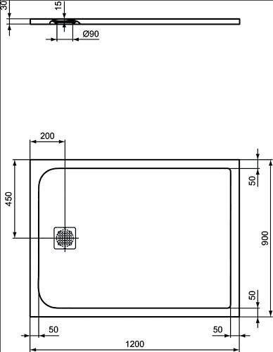 Душевой поддон Ideal Standard K8230FR Ultraflat S 120х90 см, Pure white (белый)