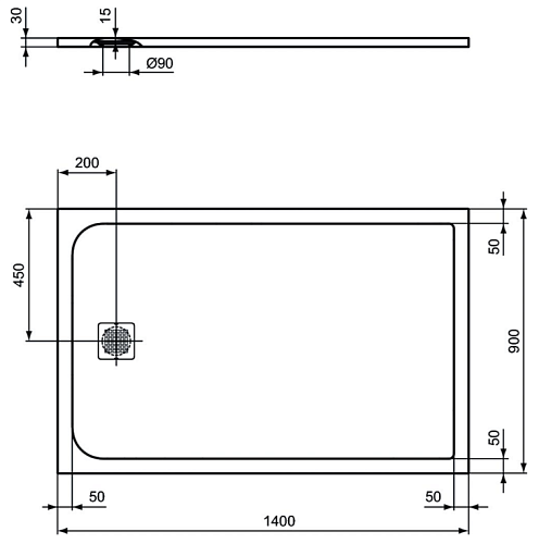 Душевой поддон Ideal Standard K8256FV Ultraflat S 140х90 см, Jet black (черный) купить по доступной цене