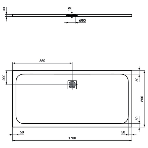 K936367 - слив для поддонов ULYTAFLAT S без крышки, серый верх.