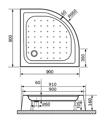 • Душевой поддон полукруглый RGW LUX/TN-P 90х90х16, артикул 16180499-41
