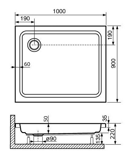 • Душевой поддон прямоугольный RGW STYLE 90х100х22, артикул 16180290-11