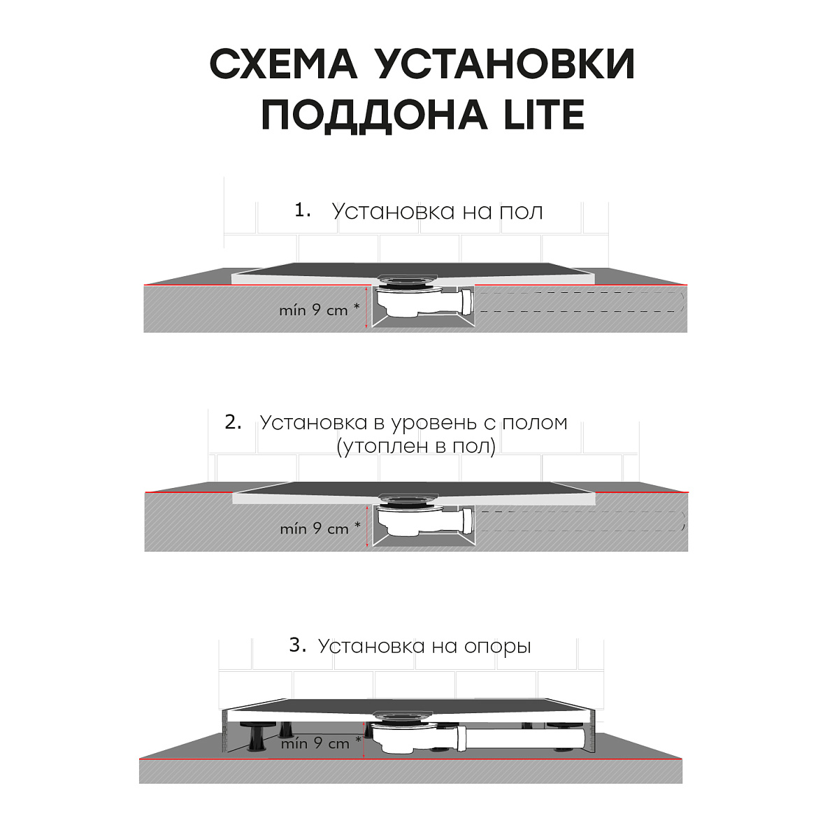 Душевой поддон Lite изготовлен из композитного материала и представляет собой смесь полиэфирной смолы, стекловолокна, наполнителя и верхнего гелевого слоя SUNILUX. Покрытие SUNILUX противоскользящее, термостойкое, стойкое к окрашиванию и УФ-излучению. Душевые поддоны производятся на современном европейском оборудовании для европейского рынка. Контроль качества осуществляется на всех этапах производства. Продукция производится и тестируется в соответствии с европейскими стандартами CE и EN: EN14516, EN 14527, IAPMO Z124-2017. Нескользящая поверхность Antislip R12 Поверхность с имитацией сланца Прочный Стойкий к перепадам температур Стойкий к воздействию химических веществ Устойчивый к загрязнениям Не меняет цвет от времени Экологически нейтральный материал Теплый на ощупь, приятный тактильный эффект Хорошее шумопоглощение (в отличие от стали и акрила) Легко моется с использованием бытовых моющих средств Возможность подрезки под индивидуальный размер Гарантия 3 года *