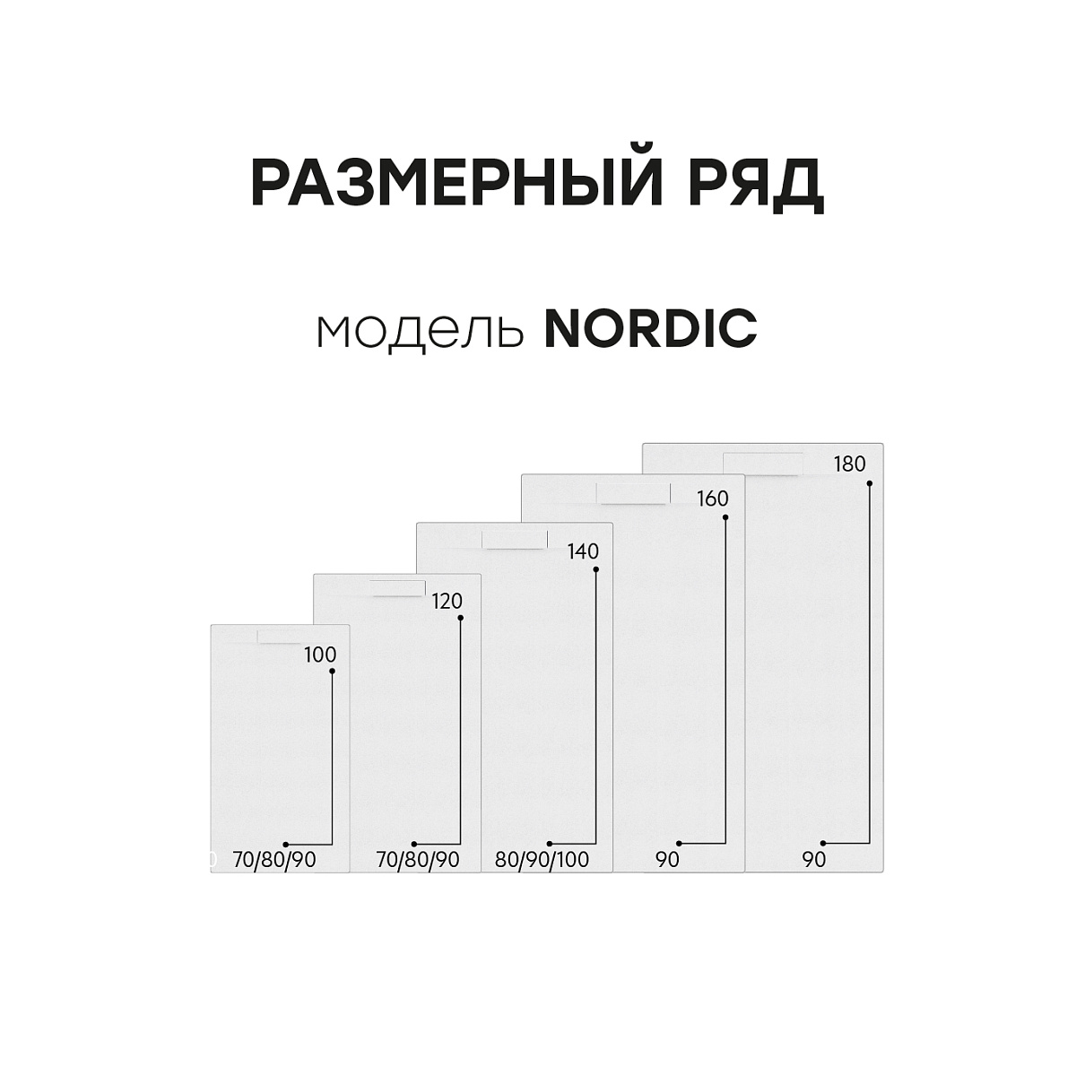 Душевые поддоны NORDIC изготовлены из искусственного мрамора, в состав которого входят натуральные минеральные наполнители и смолы. Сверху материал покрыт гелевым слоем SUNILUX. SUNILUX — это запатентованное высокопрочное гелькоут покрытие, абсолютно непористый материал, защищающий поддон от загрязнений, перепада температур и УФ-излучения. Душевые поддоны NORDIC имеют текстурированную поверхность с эффектом грифельной доски. Прямоугольный слив каждого поддона выполнен из искусственного мрамора в цвет поддона. Душевые поддоны NORDIC– это идеальный инструмент для дизайнера, они станут украшением любой ванной комнаты. - Нескользящая поверхность Antislip - Прочный (выдерживает вес свыше 300 кг) - Высокая износостойкость - Стойкий к перепадам температур - Стойкий к воздействию химических веществ - Устойчивый к загрязнениям - Не меняет цвет от времени - Экологически нейтральный материал - Теплый на ощупь, приятный тактильный эффект - Хорошее шумопоглощение (в отличие от стали и акрила) - Легко моется с использованием бытовых моющих средств - Возможность подрезки под индивидуальный размер - Гарантия 3 года