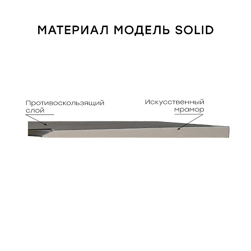 Душевой поддон Solid изготовлен из искусственного мрамора и представляет собой монолитный материал на 85% состоящий из мраморной крошки, минеральных пигментов и связывающего материала в виде полиэфирной смолы. Сверху материал покрывается гелевым слоем SUNILUX. SUNILUX — это запатентованное высокопрочное гелькоут покрытие, абсолютно непористый материал, защищающий поддон от загрязнений, перепада температур и УФ-излучения. Душевые поддоны Solid производятся на современном европейском оборудовании для европейского рынка. Контроль качества осуществляется на всех этапах производства. Нескользящая поверхность Antislip R12 Поверхность с имитацией сланца Прочный (выдерживает вес свыше 300 кг) Высокая износостойкость Стойкий к перепадам температур Стойкий к воздействию химических веществ Устойчивый к загрязнениям Не меняет цвет от времени Экологически нейтральный материал Теплый на ощупь, приятный тактильный эффект Хорошее шумопоглощение (в отличие от стали и акрила) Легко моется с использованием бытовых моющих средств Возможность подрезки под индивидуальный размер Гарантия 3 года *