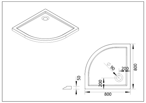 Душевой поддон изготовлен из высококачественного акрила, усиленного фиберглассом. Сифон приобретается отдельно