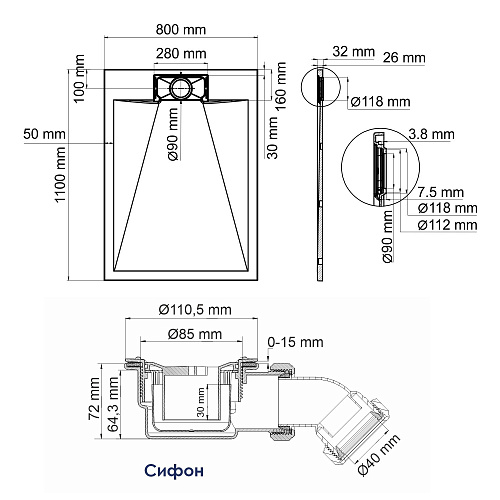 Душевой поддон WasserKRAFT Elbe 74T 74T14