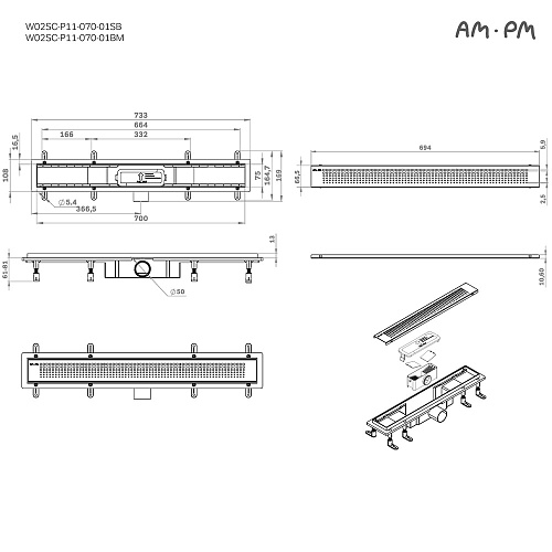 Душевой трап AM.PM PrimeFlow W02SC-P11-070-01SB
