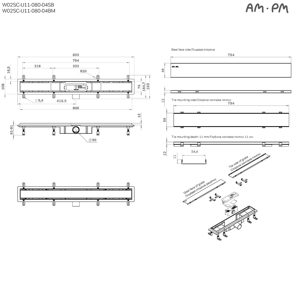 Душевой трап AM.PM PrimeFlow W02SC-U11-080-04SB