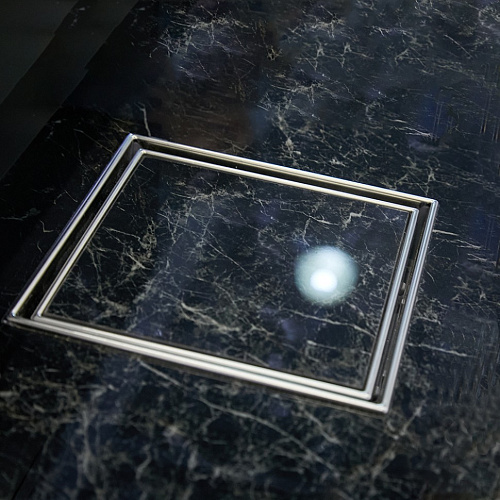 Компактный размер трапа – всего 150х150 мм, а конструкция практически незаметна на полу благодаря тому, что плитка устанавливается прямо в решетку.