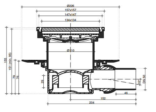 Основные характеристики товара: Выпуск: вертикальный Форма квадратная Вид затвора: мокрый Размещение: вровень с полом Диаметр подключения: 5 см Минимальная высота монтажа - 69 мм Предельно допустимая нагрузка: 300 кг Размер решетки: 150 х 150 мм Макс. пропускная способность: 48 л/мин Поворот базы 360° Материалы: металлические детали - нержавеющая сталь AISI 304 SS, корпус - прочный, экологичный ABS полипропиллен Цвет: Ceramic (полый под плитку)/рамка - позолота 24К (999 проба) Применение: ванные и душевые комнаты в квартирах, домах, гостиницах, фитнес-центрах, больницах, бассейнах, коммерческие кухни, супермаркеты, рестораны, аэропорты, застекленные балконы и т.д.
