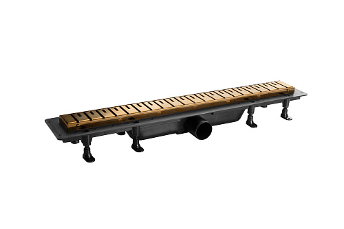 Пластиковый душевой трап с рамкой и решёткой из нержавеющей стали, матовое золото, дизайн 2, l=750 m