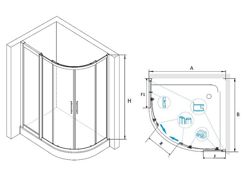 • Душевой поддон приобретается отдельно