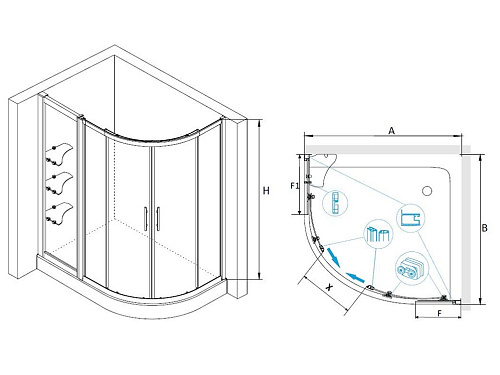 • Душевой угол ассиметричный RGW HO-62 90х120х195 прозрачное 03066292-11 (RGW HO-51 + Z-42)