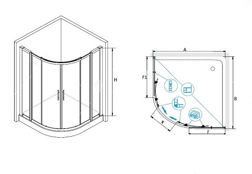 • Душевой угол полукруглый RGW HO-511 120х120х195 прозрачное 030651122-11 (RGW HO-51 + Z-41)