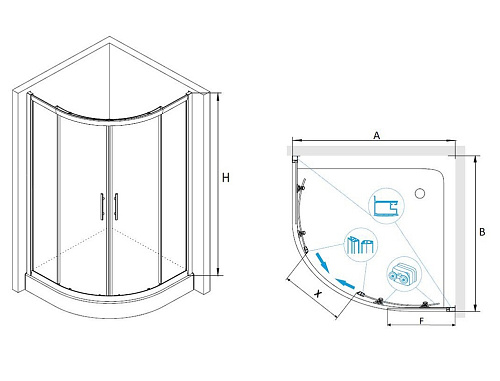 • Душевой поддон приобретается отдельно
