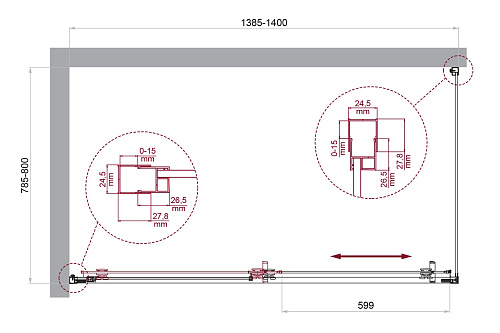 Душевой уголок BelBagno LUCE LUCE-AH-1-140/80-C-Cr