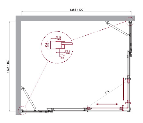 Душевой уголок BelBagno LUCE LUCE-AH-22-140/115-C-Cr