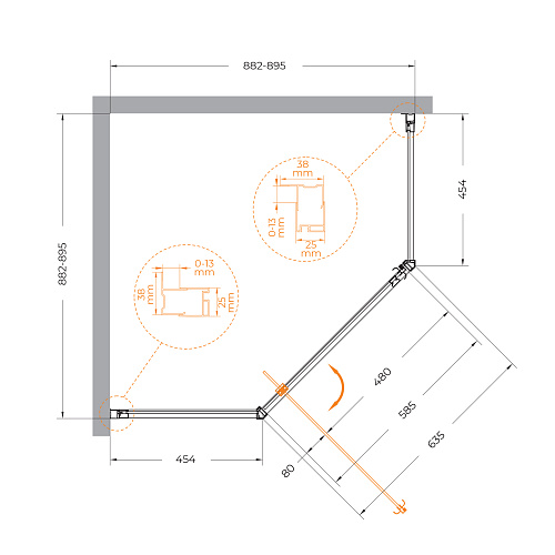 Душевой уголок Cezares ECO ECO-O-P-1-90-P-Cr