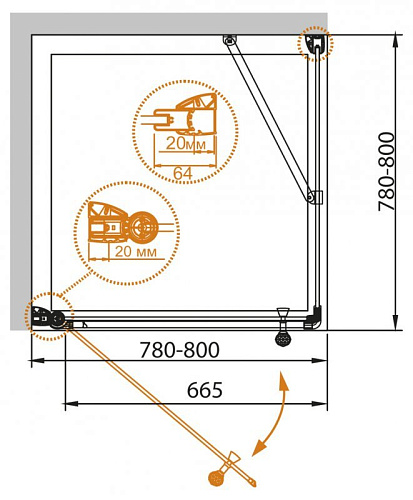 Монтаж: пристенный в угол Возможная установка: на поддон, на пол Высота: 1950 мм (max 2060мм)Форма: квадратная Ориентация: при заказе указывайте ориентацию Конструкция двери: распашная Исполнение полотна двери: прозрачное (C), прозрачное с матовым принтом (CP), матовое с прозрачным принтом (PP)Количество секций двери: 1 Толщина полотна двери: 6 мм Цвет профиля: хром (Сr), бронза (Br), золото (G) Материал полотна двери: закаленное стекло, стандарт EN12150-1:2000 Материал профиля: анодированный алюминий, стандарт DIN17611 2007 Регулировка ширины: предусмотрена за счет боковых профилей Крепления полотна двери: алюминиевая петля без подъемного Механизма Дополнительная информация: поддон приобретается отдельно Ресурс эксплуатации: 15 лет Гарантия: 3 года с даты продажи, за исключением резинотехнических изделий-на резинотенические изделия (силиконовые уплотнители, магнитные уплотнители) 1 год с даты продажи