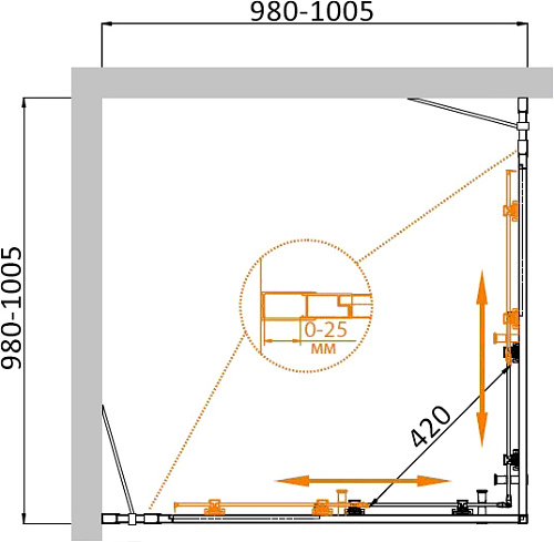 Душевой уголок CEZARES MOLVENO-A-22-80+20-C-Cr-IV
