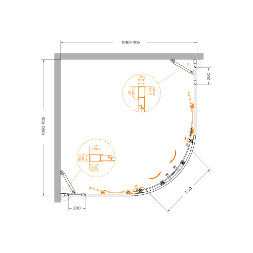Душевой уголок CEZARES MOLVENO-R-22-90+20-P-Cr