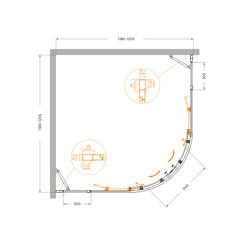 Душевой уголок CEZARES MOLVENO-R-22-90+30-P-Cr