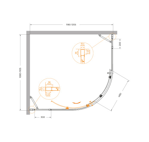 Душевой уголок CEZARES MOLVENO-RH-11-120/110-C-Cr-IV