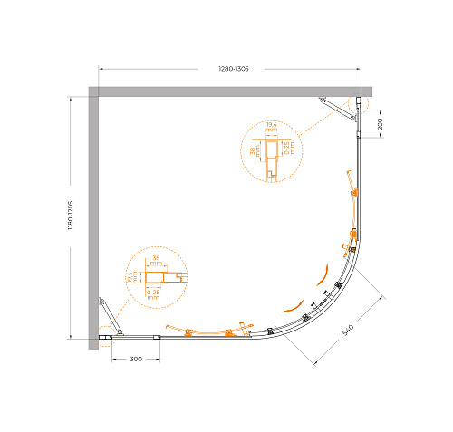 Душевой уголок CEZARES MOLVENO-RH-22-130/120-P-Cr