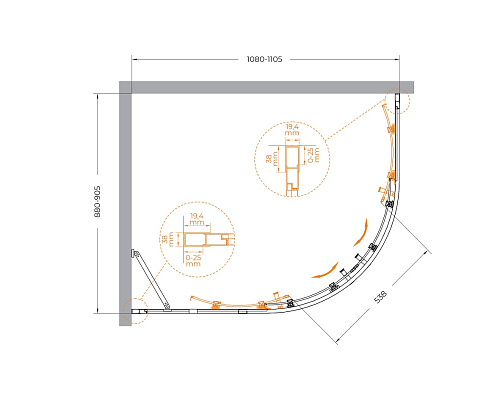 Душевой уголок CEZARES MOLVENO-RH-2-110/90-P-Cr