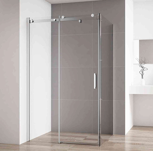 Душевой уголог: прямоугольный. Тип дверей: одна раздвижная дверь. Стекло: 8 мм, прозрачное. Исполнение: хром. Поддон: тип АН, А или барьер. Поддон или барьер приобретается отдельно. Особенности: подвижные ролики плавно скользят по металлическим направляющим.