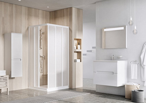 С помощью комбинации разных размеров двух частей получите квадратный или прямоугольный варианты душевого уголка, например, 75 x 90 см, 90 x 90 см, 80 x 100 см и т.д. Устанавливается в облицованный кафелем угол ванной комнаты на поддоны RAVAK ANETA, ANGELA, PERSEUS, PERSEUS PRO, PERSEUS PRO FLAT, PERSEUS PRO CHROME, GIGANT PRO, GIGANT PRO FLAT, GIGANT PRO CHROME или непосредственно на пол со встроенным душевым каналом. Возможна установка у стены при комбинации с неподвижной стенкой APSS. С помощью регулирующих профилей ANPS душевой уголок можно адаптировать к нестандартным размерам строительного проема.