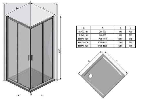 • Устанавливается в облицованный кафелем угол ванной комнаты на поддоны RAVAK ANGELA, PERSEUS, PERSEUS PRO, PERSEUS PRO FLAT, PERSEUS PRO CHROME, GIGANT PRO, GIGANT PRO FLAT, GIGANT PRO CHROME или непосредственно на пол со встроенным душевым каналом. Регулирующий профиль BLNPS позволяет увеличить ширину изделия на 20 мм.