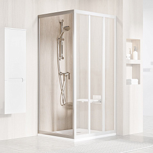Душевой уголок с неподвижной стенкой и 3-х элементной раздвижной дверью; размер ASDP3 - 80, 90, 100, 110, 120, 130 см, APSS -75, 80, 90 см.