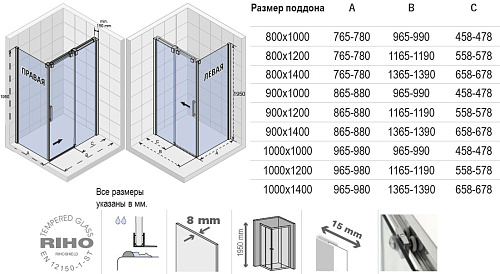 Душевой уголок Riho G006018120 Ocean 120х100 см L O203, профиль хром