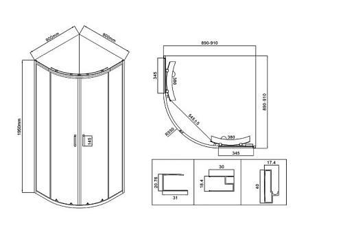 Размеры,см 90*90*195