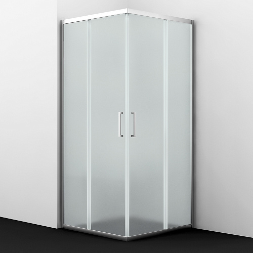 1) Закаленное матовое стекло 6 мм стандарта EN 12150-1. Обладает термической прочностью и совершенно безопасно для человека. Стекло поддается специальной обработке, что делает края стекла гладкими, ровными и совершенно безопасными. Об открытые части стекла невозможно порезаться. 2) Покрытие стекла WasserSchutz (Германия) защищает поверхность стекла от разводов воды и гарантирует легкий уход за изделием. 3) Анодированный алюминиевый профиль 32 мм 4) Регулирующий профиль до 15 мм - Возможность регулировки бокового профиля позволяет компенсировать неровности стен и настроить размер душевой двери под индивидуальный интерьер. 5) Прочный раздвижной механизм - Механизм рассчитан минимум на 30 000 рабочих циклов. Это значит, что семья из четырех человек сможет пользоваться душевой дверью минимум 10 лет. Ролики двигаются по верхней и нижней направляющим. Это обеспечивает мягкое и бесшумное скольжение роликов по направляющим профилям. 6) Силиконовые уплотнители - необходимы для герметичности изделия. 7) Механи