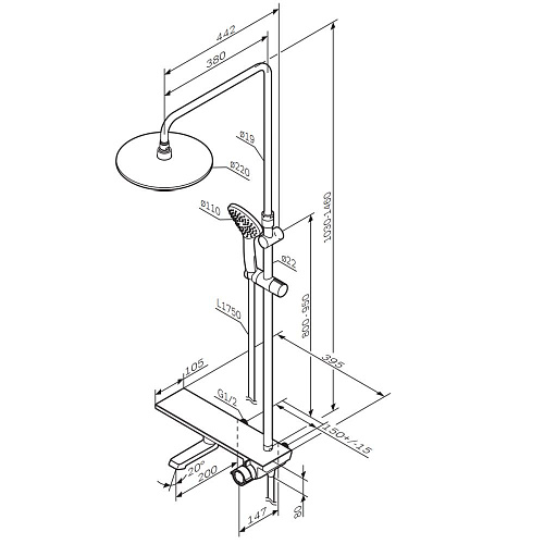 Тип товара Душевая система со смесителем-полкой для ванны и душа